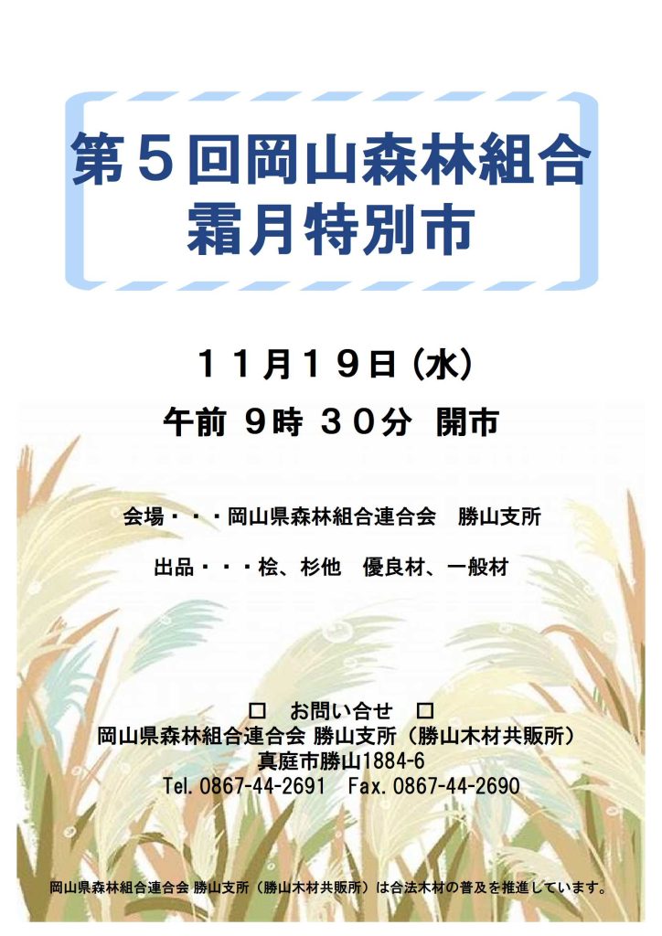 2025.10.18 勝山支所 特別市のご案内 11月19日(水)9時30分から「第5回岡山森林組合霜月特別市」を開催いたします。 皆様のご来所、お待ちしております。 次の記事へ お知らせ一覧 次の記事 一覧へ戻る